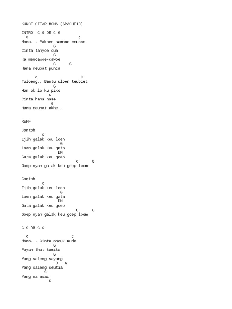 Chord Kunci Gitar Mona Apache 13 Afyinfo